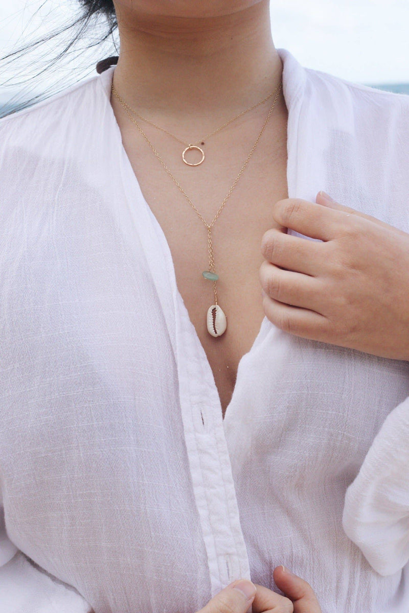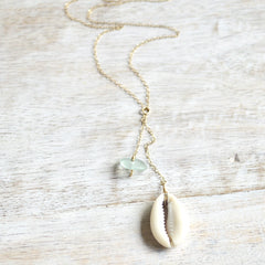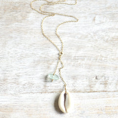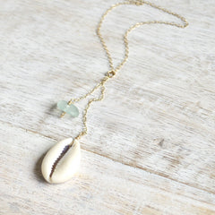 Cowrie Shell & Sea Foam Glass Necklace in Gold