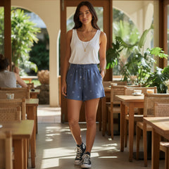Crafted from breathable linen, these Kalo Collection shorts have a relaxed fit and tie-waist closure with side pockets.  Perfect for the beach or casual outings. Wear with a t-shirt or tank or with the matching button down!